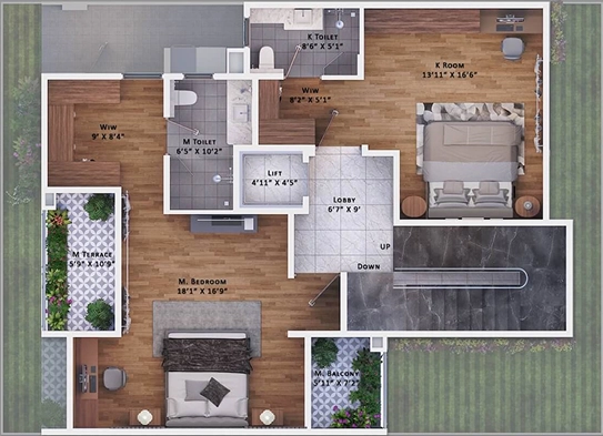 The super built up area of 4 BHK row villas in Sattva Springs ranges from 3607 to 5287 sq.ft.