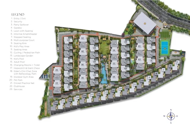 The project comprises of 66 luxury row villas and spreads across 5 acres 34 guntas.