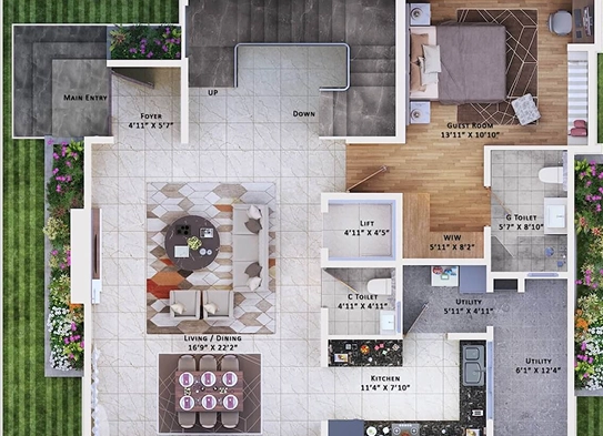 Choose from 6 distinct row villa configurations, each designed to balance spacious living areas, privacy, and effortless functionality.